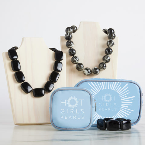 Each Cooling Trio comes with one cooling pearl necklace, one chicklet cooling necklace and chicklet cooling bracelet. You'll never have to feel hot again.